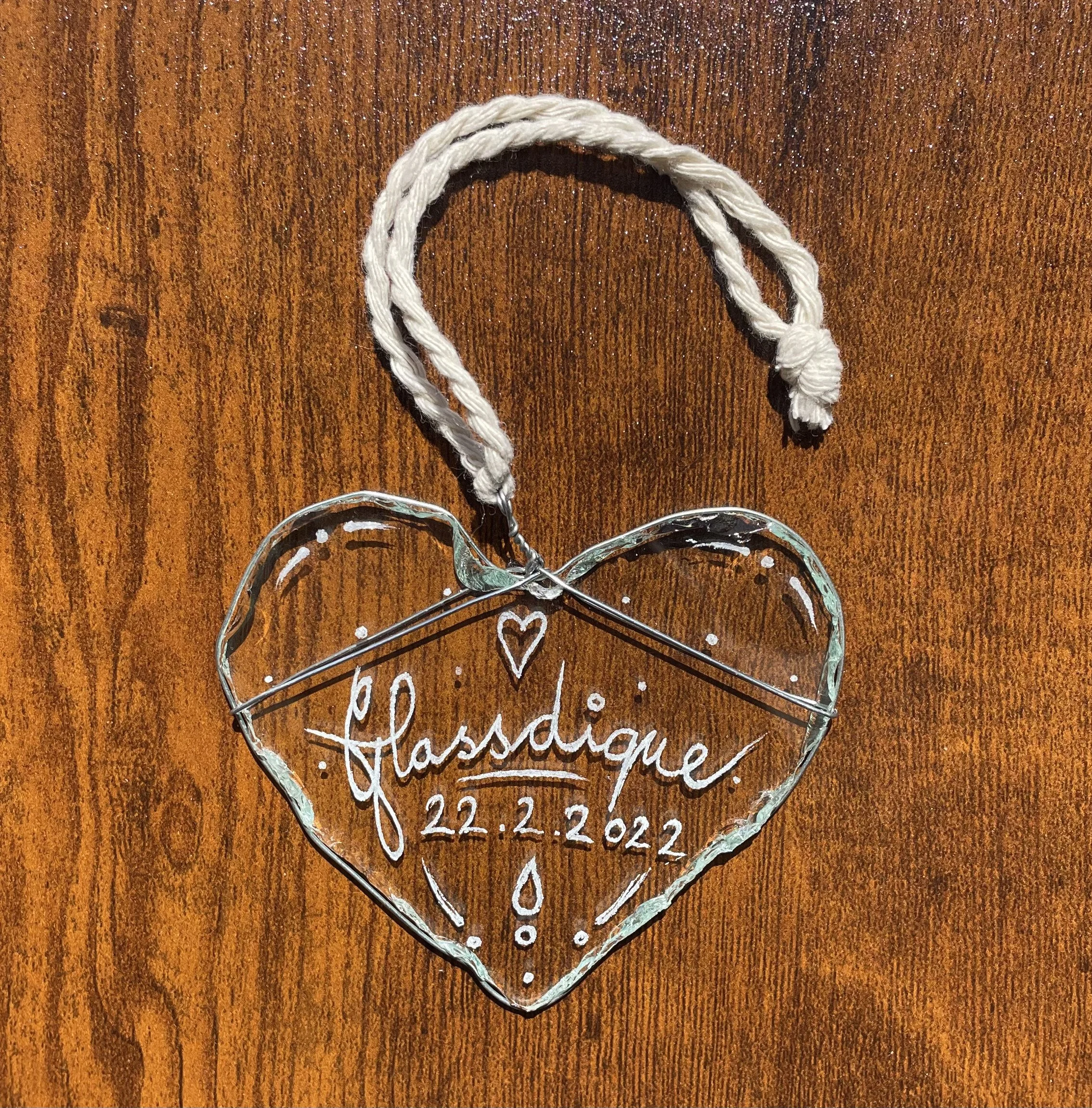 Shard HeartsHearts made from broken glass, every heart is original and is hold by metal wire.Clear or Engraved version.